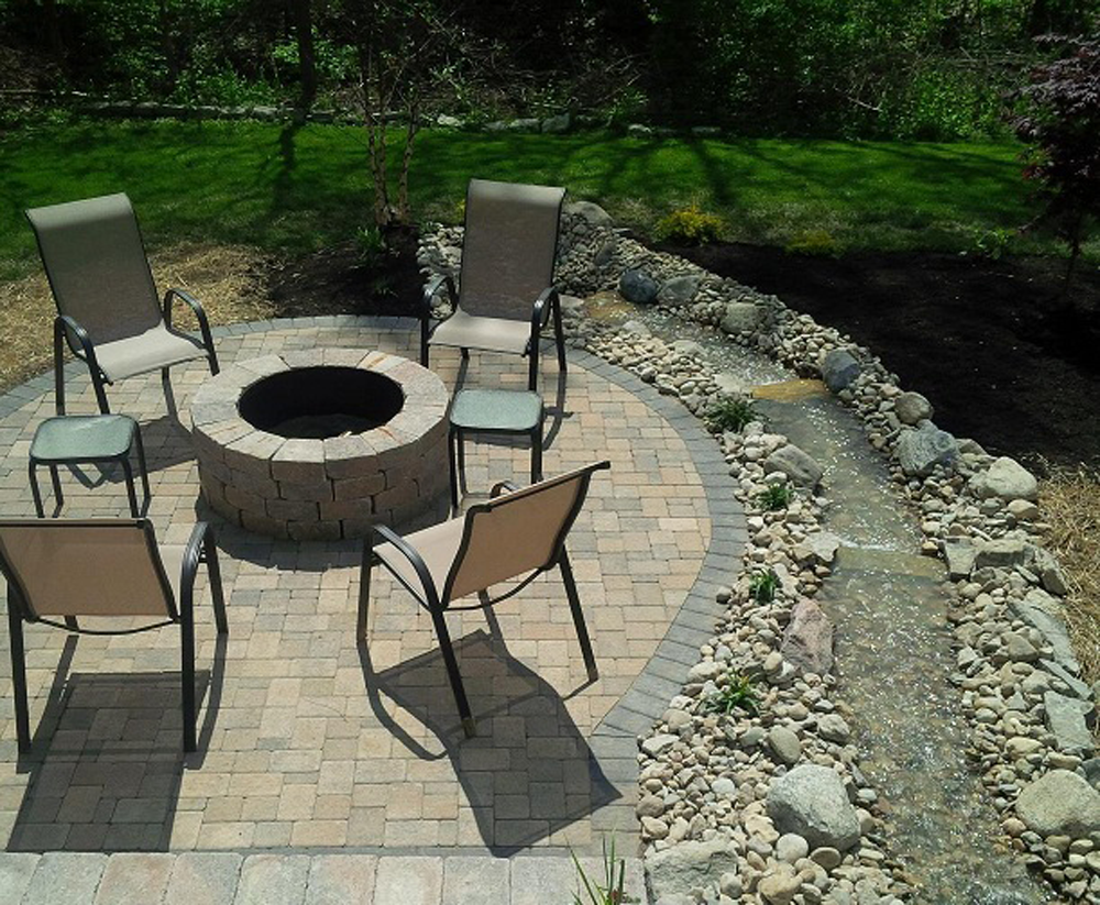 Water features and firepits are natural complements to each other. A burbling stream or fountain next to a crackling fire is like camping in the mountains– right in your own backyard.